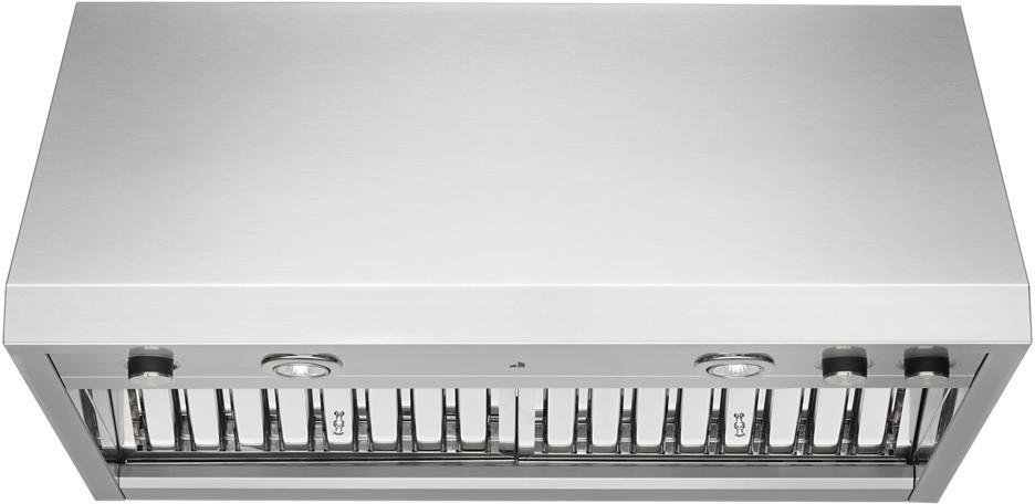 This JennAir® Professional wall-mount hood powerfully clears the air of smoke, steam and cooking odors. Designed to work above smaller cooking surfaces, it features commercial-style design, a 600 CFM high-performance blower and four different fan speed settings.Read More
