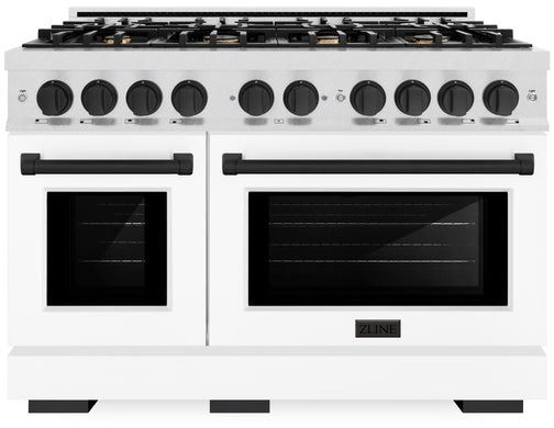 Luxury isn’t meant to be left desired—it’s meant to be attainable. The ZLINE Autograph Edition 48 in. 6.7 cu. ft. Select Double Oven Dual Fuel Range with 8 Burner Gas Cooktop in Satin Stainless Steel with White Matte Doors and Matte Black Accents (HDRSZ-WM-48-MB) combines the elegance of a hand-finished porcelain gas cooktop with 8 Italian-made auto-reignition burners, a large electric convection oven with an energy-efficient cooling fan to ensure quiet operation, a small bake-and-broil oven, beautiful white matte doors with Horizon window designs, and stunning matte black knobs and handles allowing you to master every meal. With a modern, timeless style and refined functionality, ZLINE Select Dual Fuel Ranges are masterfully crafted to deliver an elevated culinary experience.Read More