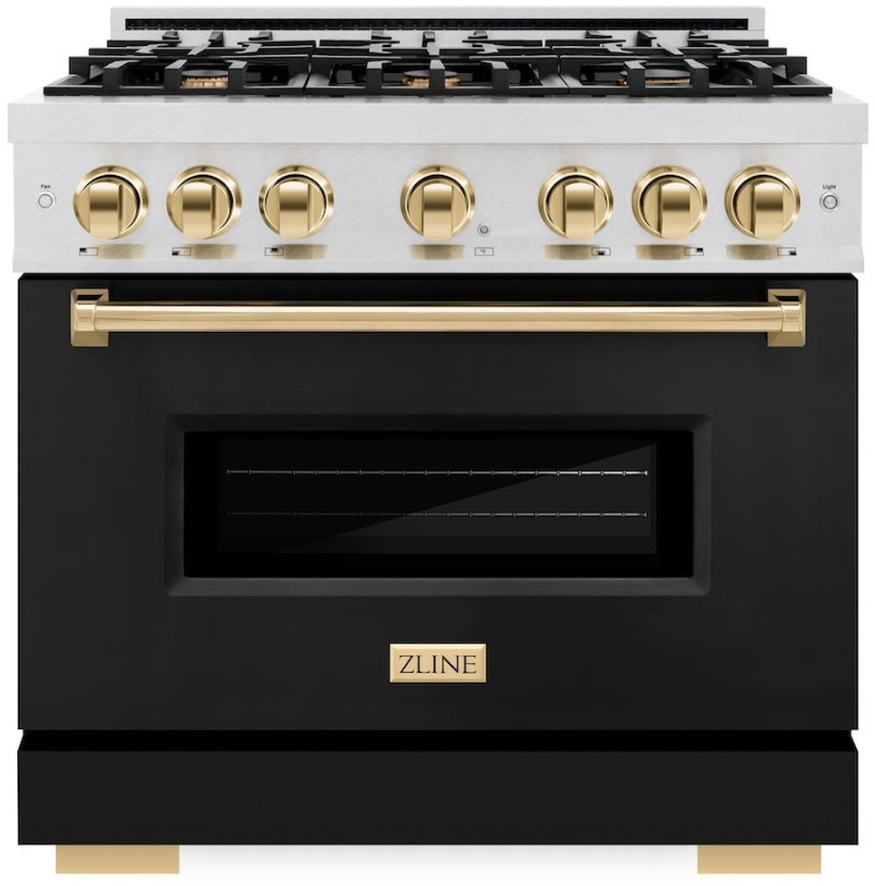 Luxury isn’t meant to be left desired—it’s meant to be attainable. The ZLINE Autograph Edition 36 in. 5.2 cu. ft. Classic Gas Range with 6 Burner Cooktop and Convection Gas Oven in Satin Stainless Steel with Black Matte Door and Polished Gold Accents combines the elegance of a hand-finished porcelain gas cooktop with 6 Italian-made auto-reignition burners, a gas convection oven with an energy-efficient cooling fan to ensure quiet operation, a beautiful black matte door with a Landscape window design, and stunning polished gold knobs and handle allowing you to master every meal. With a modern, timeless style and refined functionality, ZLINE Classic Gas Ranges are masterfully crafted to deliver an elevated culinary experience.Read More